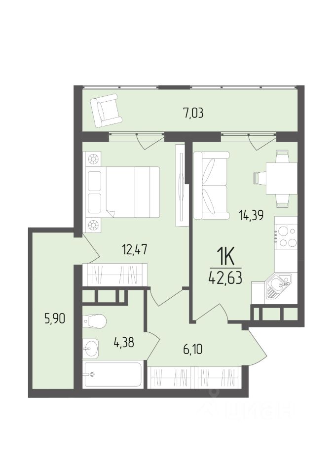 Общая площадь42,63 м²