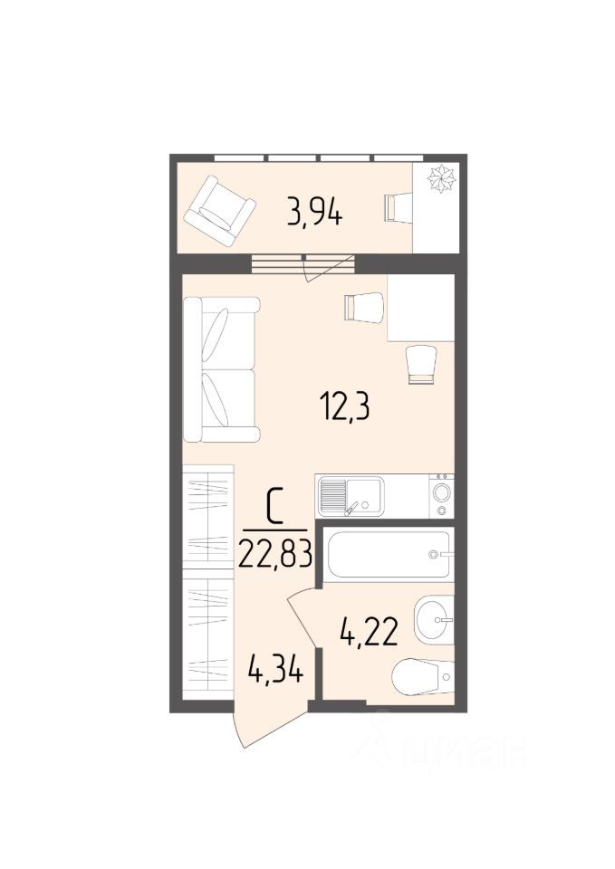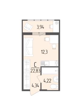 Общая площадь22,83 м²