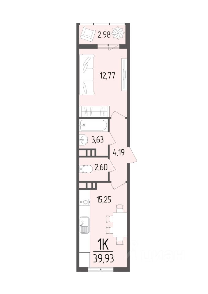 Продается 1-комн. квартира, 39,93 м²