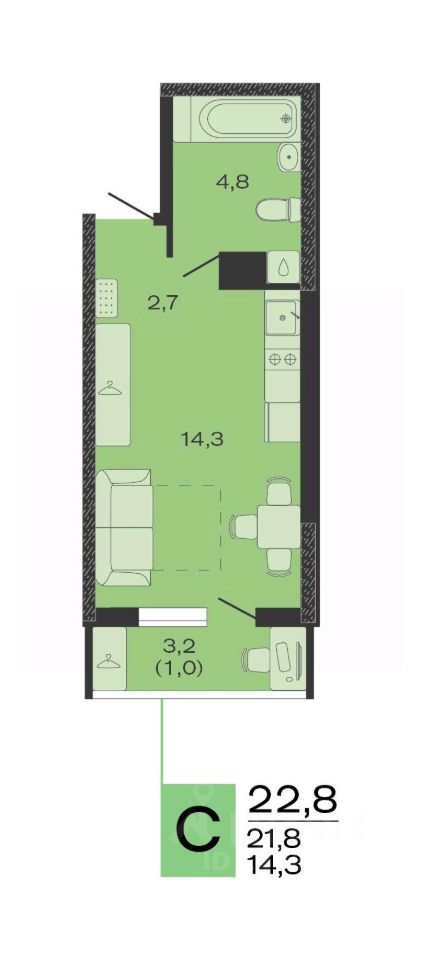 В продаже квартира в жилом комплексе "Дзенпарк" от застройщика ГК "Лендекс"!