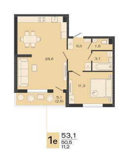 Общая площадь53,1 м²