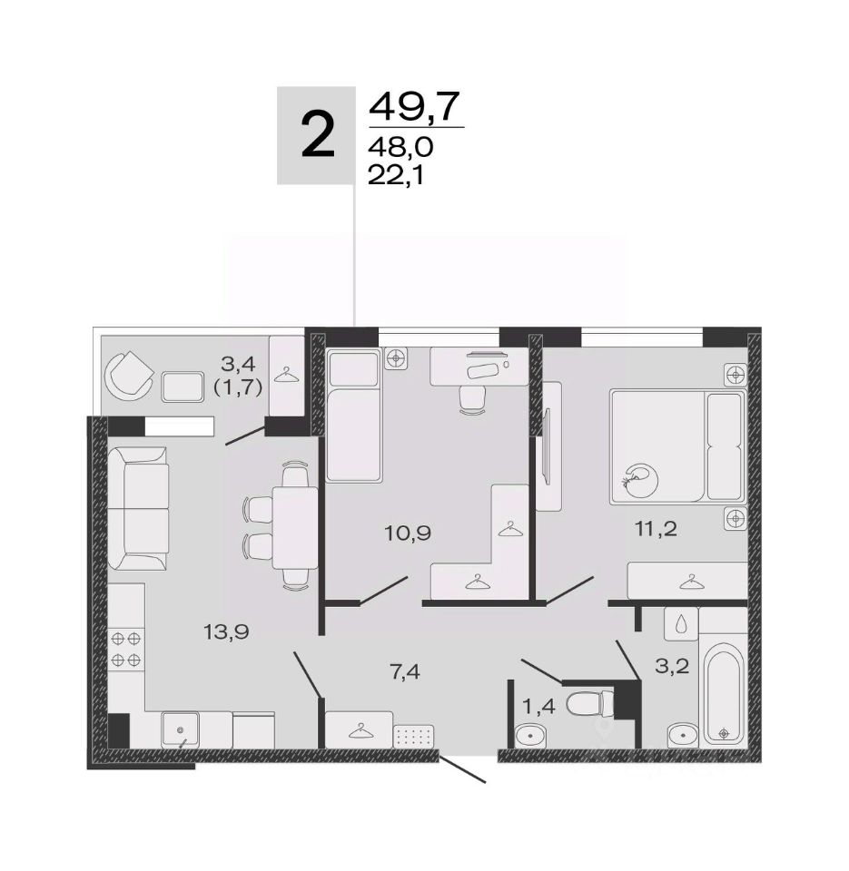 Общая площадь49,7 м²