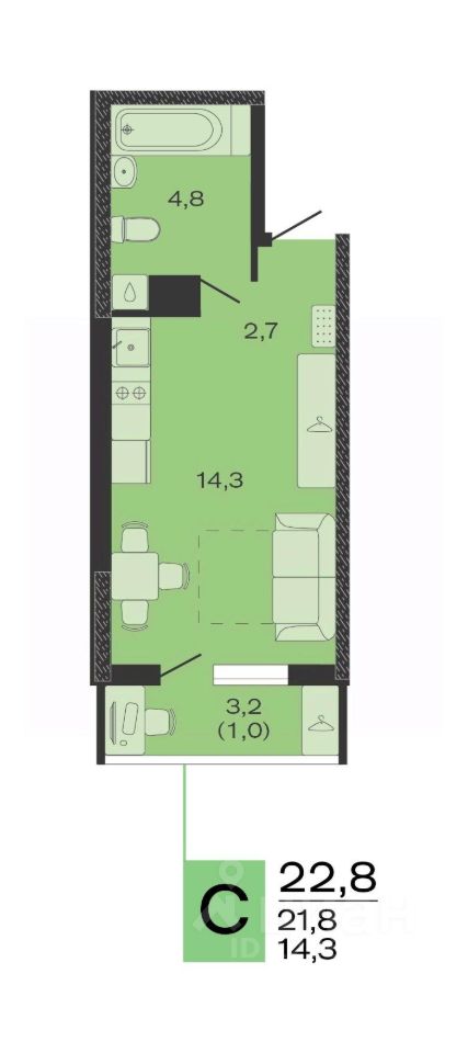 Общая площадь22,8 м²