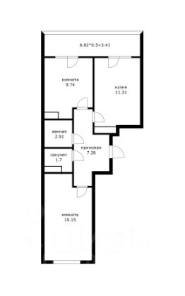 В продаже 2комнатная квартира площадью 55 м2. Планировка на 2 стороны.