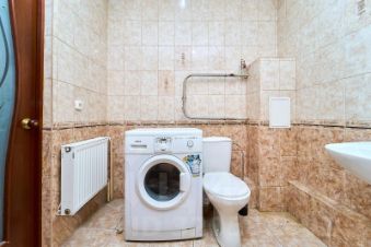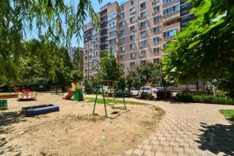 Сам дом монолит-кирпичный, чистый и ухоженный подъезд. Во дворе очень много зелени, тихо и спокойно. Есть детская площадка и зоны для отдыха.