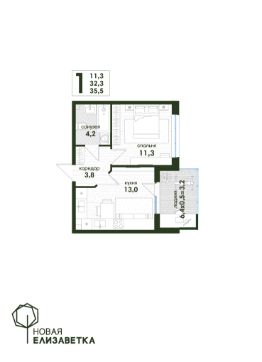 Продаётся 1-комнатная квартира в сданном доме (Дом 1.1 литер 4), срок сдачи: IV-кв. 2024, общей площадью 35.5 кв.м., на 1 этаже. Уникальный зелёный оазис тишины и спокойствия "Новая Елизаветка" в пригороде Краснодара.