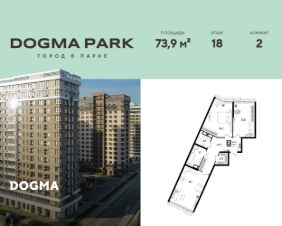 В продаже 2-комнатная квартира от застройщика! Мкр. "DOGMA PARK" г. Краснодар, Литер 13 Срок сдачи: 4 кв. 2027, общей площадью 73.9 кв.м., на 18 этаже.