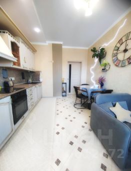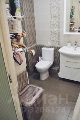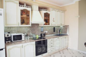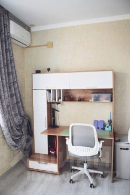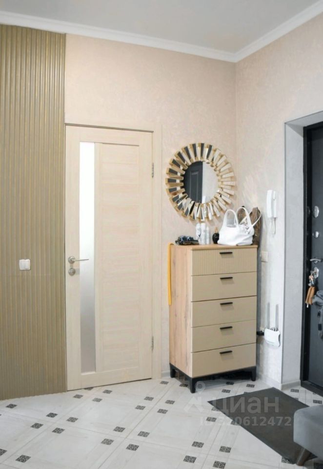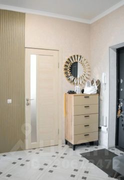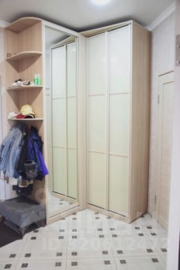 Внутри. Уютная светлая бежево-серая отделка стен и пола. Квартира полностью до мелочей оборудована для жизни. Остается вся мебель и техника (кроме детской кровати и школьного рабочего стола): встроенный угловой шкаф в прихожей, встроенный стеклянный вместительный шкаф в комнате, шкаф на балконе, кухонный гарнитур с бытовой техникой и посудомоечной машиной
