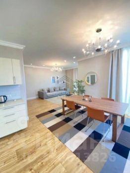 Площадь — 130 м², 16 этаж из 22, планировка: кухня-гостиная 50 м², две спальни (в том числе хозяйская с собственным санузлом и гардеробной), два санузла, ванная и две душевые кабины. Квартира полностью меблирована и оснащена техникой: духовой шкаф, варочная панель, посудомоечная машина, стиральная машина, сушильная, холодильник, кондиционеры во всех комнатах, бойлер на 150 л, тёплые полы. Ремонт европейского уровня, материалы — Испания и Италия. Дом кирпично-монолитный с вентфасадом из керамогранита, закрытая территория, охрана, видеонаблюдение, консьерж, подземный и наземный паркинг.