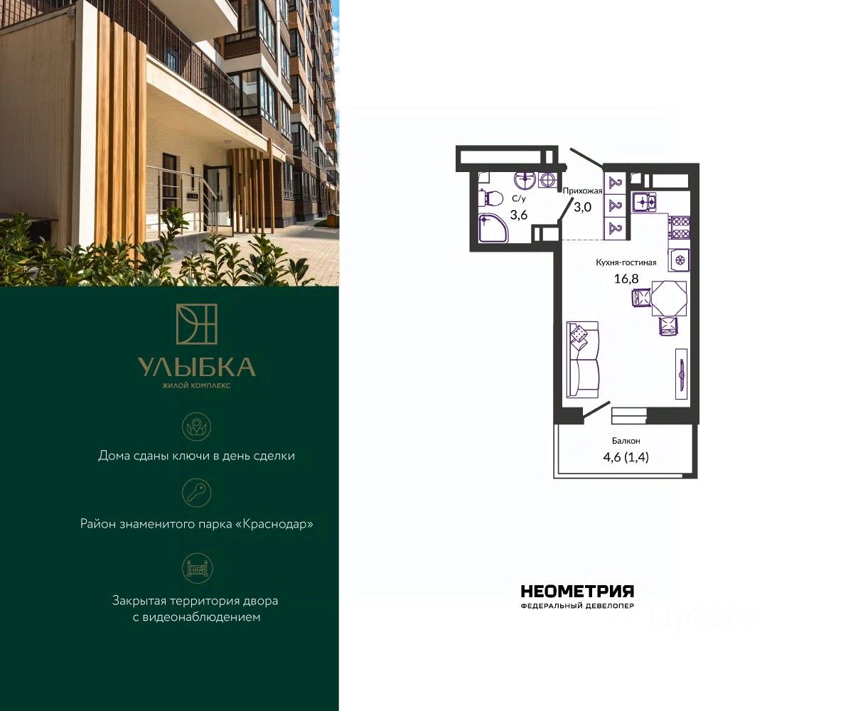 Продается квартира в жилом комплексе "Улыбка" от федерального девелопера "Неометрия". Все дома сданы, ключи в день сделки.