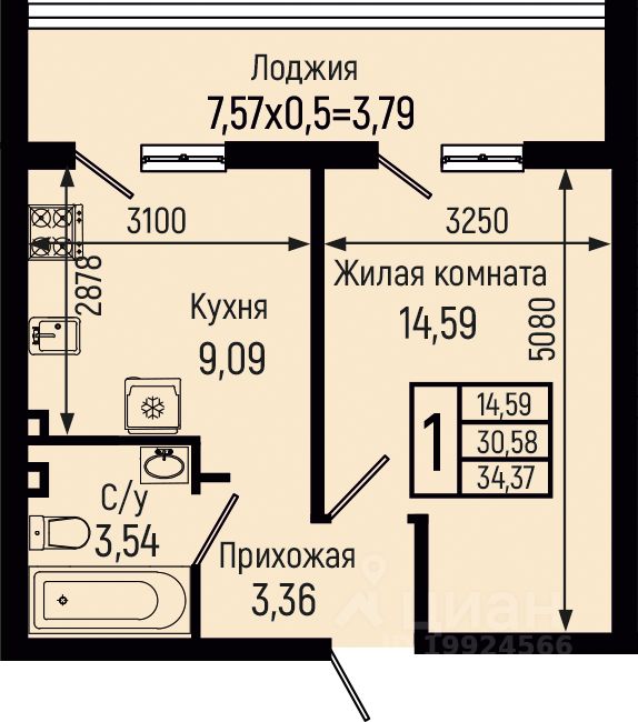 34,37 м²