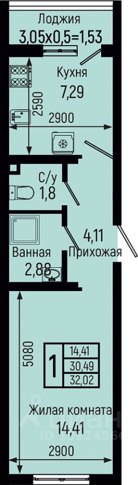 32,02 м²