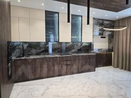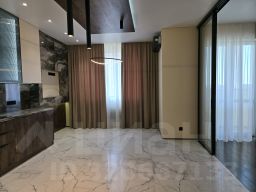В квартире выполнен дизайнерский ремонт, полностью обустроена и укомплектована мебелью и техникой. Удобная планировка, две изолированные комнаты, больная кухня- 22м2. В гостиной, спальне и кухне витражное остеклением с прекрасным видом на город. Спальня с гардеробной. Квартира полностью готова к проживанию.