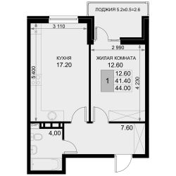 Общая площадь44 м²