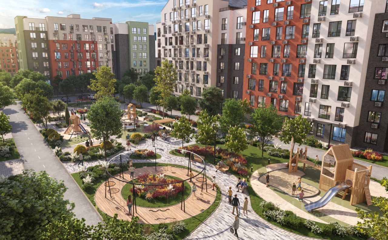 Территория комплекса благоустроена, организованы аллеи для прогулок, детские площадки и спортивные зоны. Для автовладельцев предусмотрена стоянка.