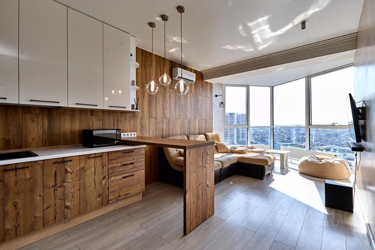 Квартира с красивым видом из окон на элитный КП Поле чудес и город. Грамотная планировка квартиры, комфортная для проживания: большая кухня-гостиная с витражным остеклением, комната с лоджией, просторная прихожая. В квартире сделан дизайнерский ремонт, остается вся мебель и бытовая техника. Заходи и живи!