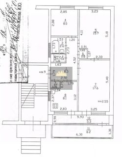 Планировка, 3 спальных комнаты, прихожая, кухня, балкон со спуском в подвал.