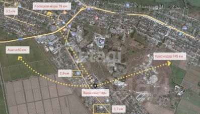 Станица Голубицкая (Азовское море) - 15 км.Поселок Кучугуры - 48 км.Анапа (Черное море) - 59 км.Крымский мост - 80 км.