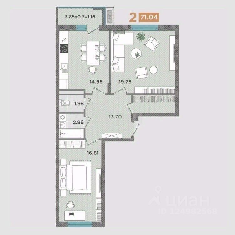 Квартира впечатляет своей продуманной планировкой: две светлые комнаты, расположенные на разные стороны, обеспечат вам максимальное уединение и комфорт. Просторная кухня с выходом на балкон станет идеальным местом для утреннего кофе или вечерних посиделок с близкими. Раздельный санузел и выделенное место под гардеробную добавляют функциональности и удобства.