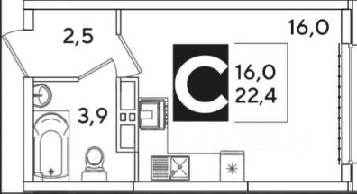 Площадь: 22,4 м² (жилая 16 м²)
