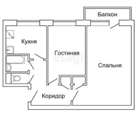 Общая площадь 48,4 кв. м., жилая 28 кв. м., площадь кухни 8.5 кв. м.