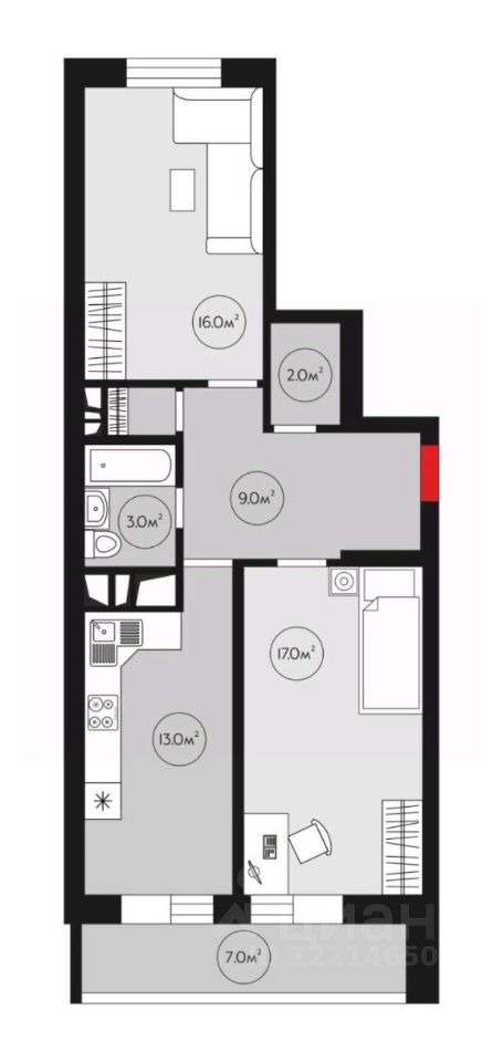 Квартира площадью 62.1 кв.м. состоит из двух просторных комнат, которые идеально подойдут как для семьи, так и для одинокого человека. Благодаря светлым отделочным материалам и удобной планировке, здесь всегда царит уют и комфорт.