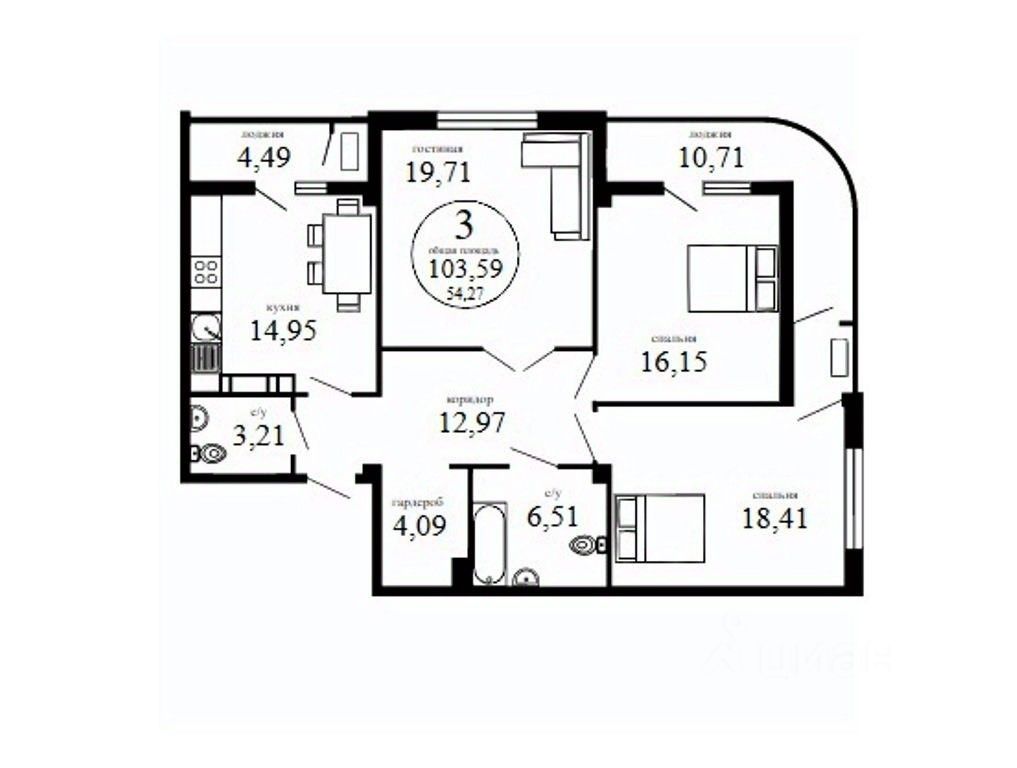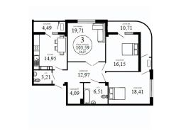 Общая площадь квартиры составляет 103 квадратных метра, что обеспечивает максимальный комфорт для семьи любого размера. Просторные комнаты, светлые и уютные, позволят каждому члену семьи найти свой уголок для отдыха и работы.
