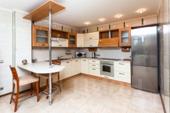 Окна квартиры выходят на спокойную улицу, что обеспечивает тишину и уединение в самом центре города. Рядом расположены магазины, кафе, школы и детские сады, что делает эту квартиру идеальным выбором для семей с детьми.