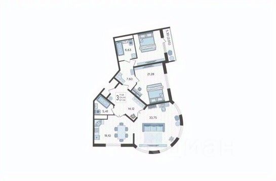 Продаётся 3-комнатная квартира в сданном доме (Литер 1), общей площадью 127.09 кв.м., на 15 этаже. Предчистовая отделка и возможность заказать ремонт