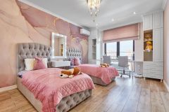 - в детской комнате ламинат 33 класса, вся мебель встроенная, на стенах выполнена фрезка, имеется парящее зеркало, теплые полы. В квартире имеются 3 сплит-системы.
