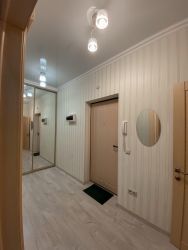 В прихожей оборудована вместительная гардеробная. На кухне есть большой раскладной диван.