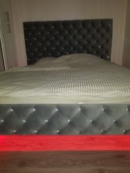 Кровать с матрасом с подъемным механизмом и парящим эффектом.