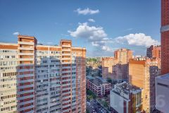 В квapтире пpостоpная кухня, две спальни, раздельный санузел, гардеробная и лоджия.