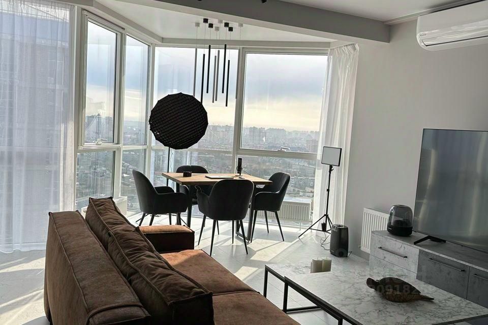 - **Панорамные окна** открывают шикарный вид на город, делая квартиру светлой и просторной.