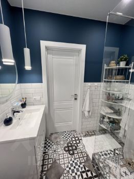 Вся мебель изготавливалась под заказ, крашеные фасады, качественная фурнитура. Входная дверь изготовлена в едином исполнении с межкомнатными дверьми. А также для улучшения изоляции и расширения устанавливались стены из пеноблока ванной комнаты, установлен теплый пол.