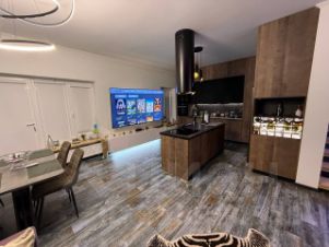 Встраиваемая техника, стиралка с сушкой, посудомойка, кухонный остров. Телевизор диагональ 90, второй 75. 3 парковочных места, есть своя мануальная зона с водой, в квартире артезианская вода 200 метров скважина, бесплатная. Есть газ. Потолок гипсокартон, в каждой комнате в потолке разводка под динамики. Подогрев полов как на первом так и на втором этаже . На первом и втором этаже сан узел , гардеробная. Квартира под охраной. Отдаю со всей техникой. Своя собственная мангальная зона для отдыха . Закрытая территория .