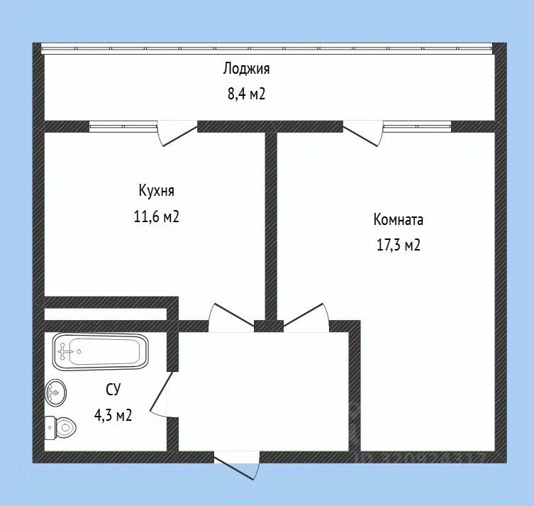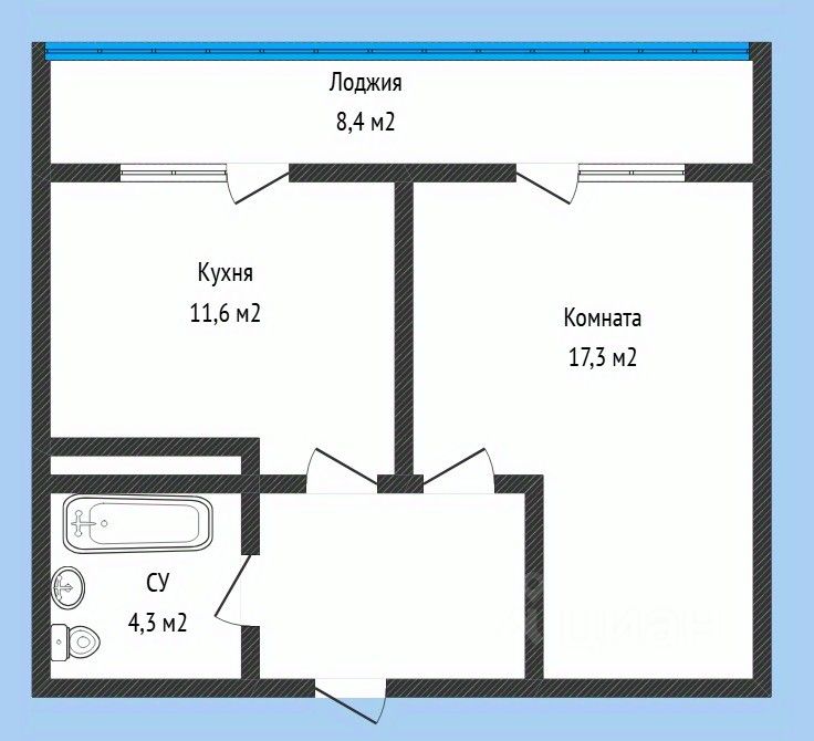Ленточный балкон 8,4 м2 с выходом из комнаты и кухни, при желании можно присоединить часть балкона, тогда площадь квартиры ещё увеличится.