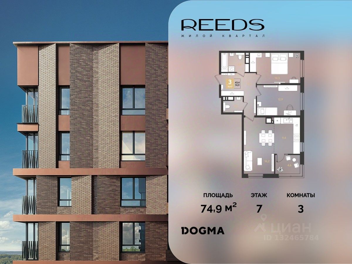В продаже 3-комнатная квартира от застройщика DOGMA! ЖК REEDS, г. Краснодар, Литер 5