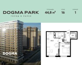 В продаже 1-комнатная квартира от застройщика! Мкр. "DOGMA PARK" г. Краснодар, Литер 14 Срок сдачи: 4 кв. 2027, общей площадью 44.8 кв.м., на 16 этаже.