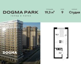 В продаже квартира-студия от застройщика! Мкр. "DOGMA PARK" г. Краснодар, Литер 32 Срок сдачи: 3 кв. 2027, общей площадью 19.3 кв.м., на 9 этаже.