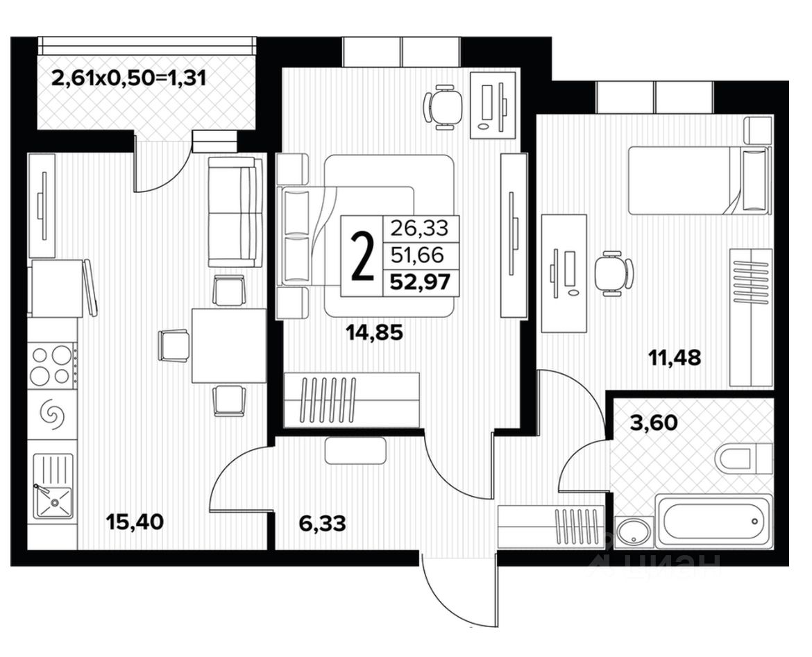 Дом сдан ! Без обременений ! Единственная квартира по такой цене . БЕЗ КОМИССИИ ДЛЯ ПОКУПАТЕЛЕЙ !!Продается просторная евро - 3 к. квартира ( две спальни и кухня - гостиная ) в новом доме, расположенном в современном жилом комплексе на улице имени Владимира Жириновского, 7 в Краснодаре. Общая площадь квартиры составляет 52.7 кв. м, из которых 26 кв. м жилая площадь и 15.4 кв. м площадь кухни. Квартира находится на 17 этаже 19-этажного дома, построенного в 2025 году. Высокие потолки 2.8 метра создают ощущение простора и свободы.