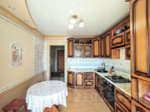 Двухкомнатная квартира, о.п. 83 кв.м., расположенная на четвертом этаже пятиэтажного кирпичного жилого дома по ул. Октябрьская. Раздельное расположение комнат. На стенах обои нейтральный цветов, двухуровневые гипсокартонные потолки с элементами точечного освещения, полы застелены ламинатом. Две застекленные лоджии, обе имеют выход из комнаты. Просторная кухня, совмещена с лоджией, стены оклеены обоями, одна из стен украшена фреской из плитки, двухуровневый гипсокартонный потолок с элементами натяжного, со встроенным точечным освещением, рабочая зона облицована плиткой, пол застелен ламинатом. С/у раздельный, облицован плиткой. По договоренности, остается мебель и бытовая техника. Установлены металлопластиковые окна. Счетчики на коммуникации. Две сплит-системы.Отопление - навесной двухконтурный котел (индивидуальное). Входная дверь - металлическая. Чистый, ухоженный подъезд, оборудован домофоном.