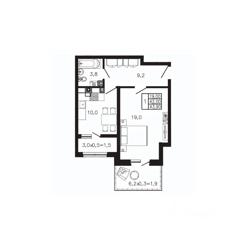 43,9 м²