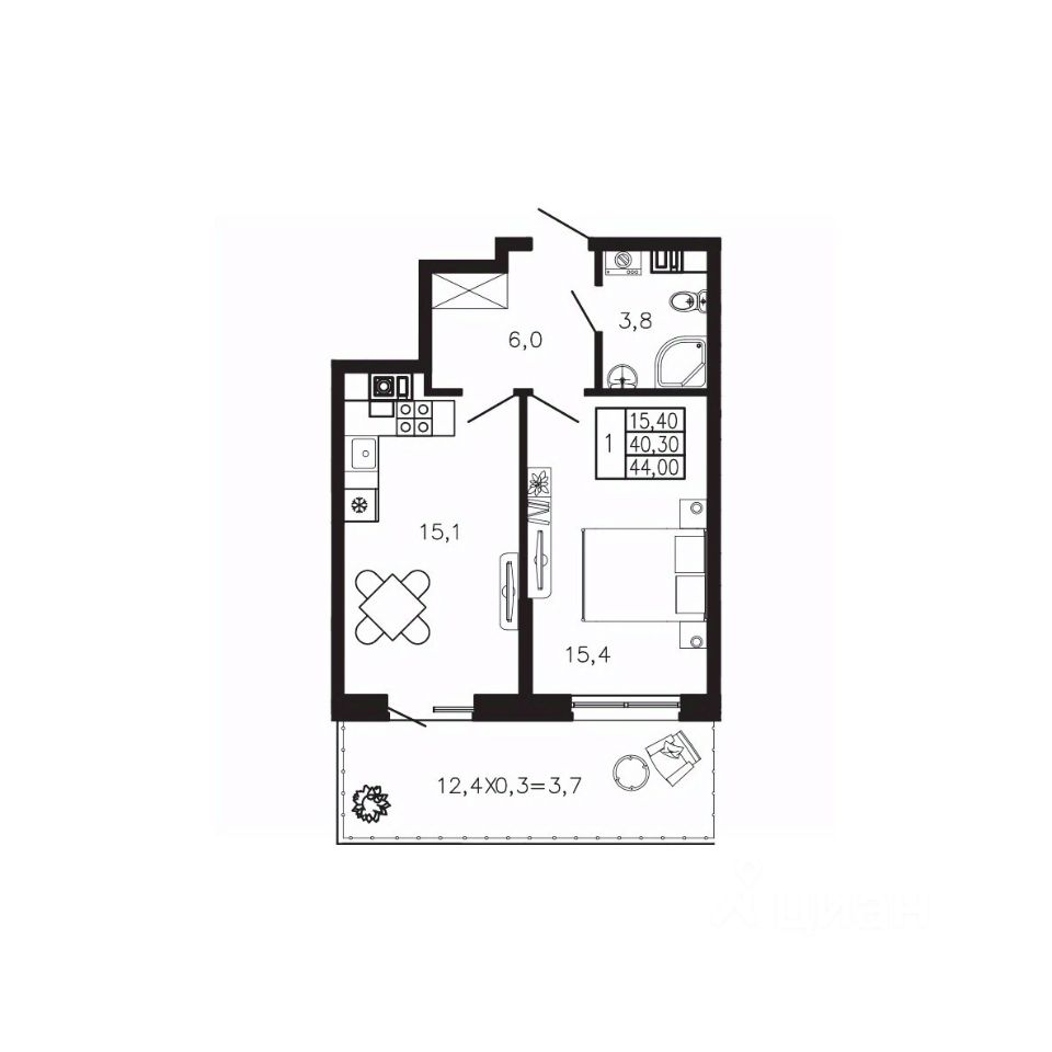 15,4 м²