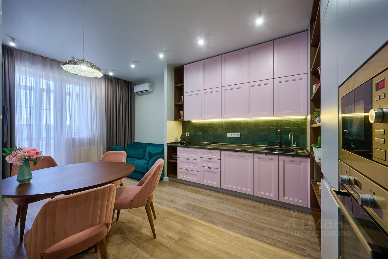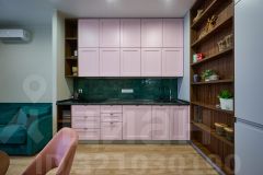 • Кухня с встроенной техникой, большим количеством шкафов, дизайнерским столом, мебелью и текстилем на заказ.