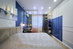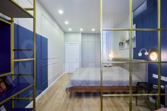 • Спальня с гардеробом, рабочей зоной и итальянскими светильниками.