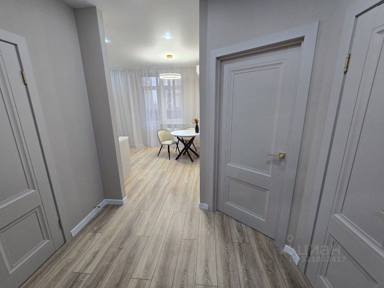 Светлая и уютная квартира имеет изолированную планировку, где на пол единым контуром положен качественный ламинат, а также установлены дизайнерские межкомнатные двери.