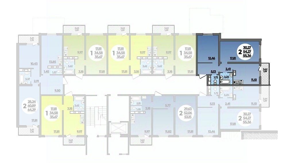 Продаётся 2-комнатная квартира в сданном доме (Корпус 1), срок сдачи: IV-кв. 2024, общей площадью 55.36 кв.м., на 5 этаже.