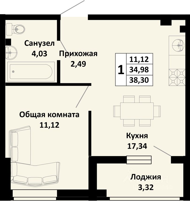 1-комнатная квартира в новом жилом комплексе комфорт-класса "Южные соседи" в тихом зелёном районе Краснодара, мкр. Молодёжный (ул. Северная, 42).