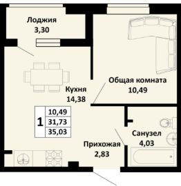 1-комнатная квартира в новом жилом комплексе комфорт-класса "Южные соседи" в тихом зелёном районе Краснодара, мкр. Молодёжный (ул. Северная, 42).
